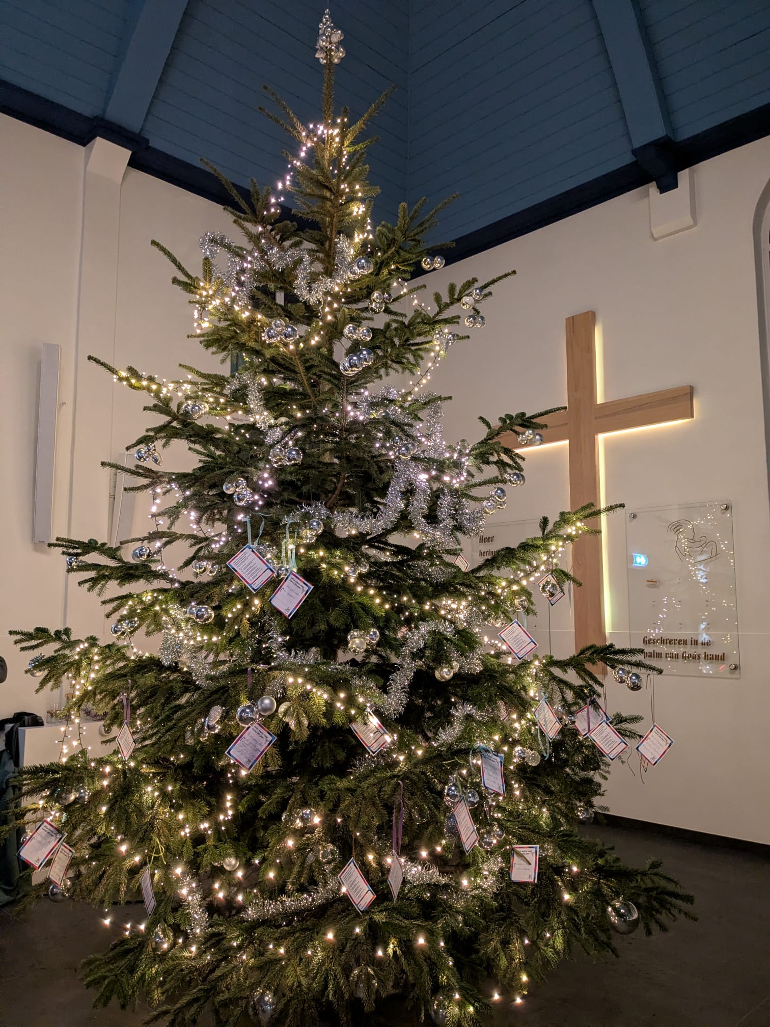 De wensen in de boom vormden een grote slinger van verbondenheid en straalden tussen de lichtjes.